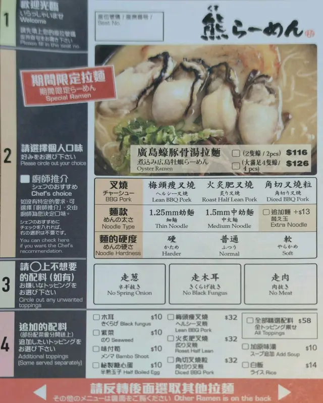 其實唔肯定依間拉麵係日本黎定係香港嘅拉麵,不過見佢個廣島蠔豚骨湯拉麵好似幾吸引,就入去試下。