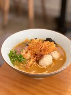 相比之下蝦湯嘅鹹香更為濃郁🧡提取蝦肉嘅精華配上雞肉丸嘅口感啱啱好🍗 上海麵嘅掛湯能力一流吸取曬湯底的精華🥹