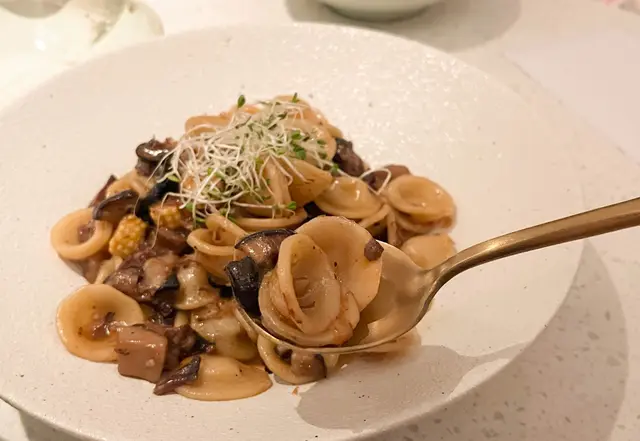 甜美的醬汁中有獨特的牛肉味,十分惹味。再配上粟米芯和菌類,口感更豐富!