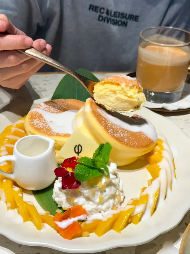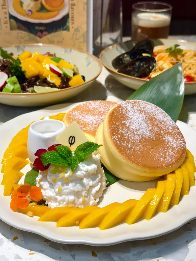 一次满足两个愿望✌️喜欢吃舒芙蕾和芒果糯米饭的一定要点‼️舒芙蕾duangduang的空气感十足~充满蛋香和奶香🥞浸满椰奶的糯米饭搭配超甜芒果~一口到泰国🥭超级正👍