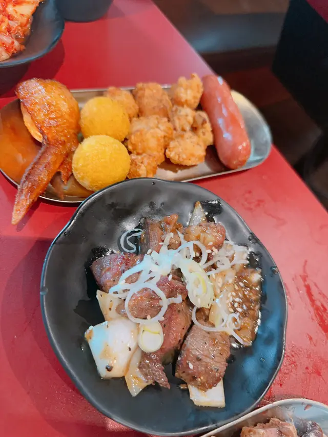 炸物熱辣辣質素不錯🍤推薦榴槤炸彈同日式芝士年糕 好軟糯流心餡澎湃要趁熱吃👍🏻安格斯一口牛粒加了洋蔥一起炒 味道不錯🧆主食類也有韓式石鍋飯一定夠飽肚🍚