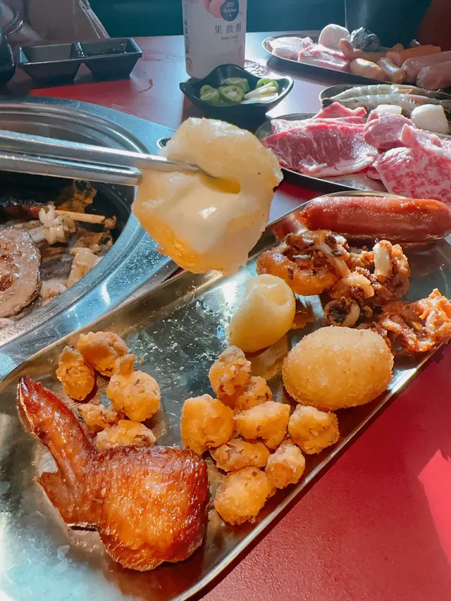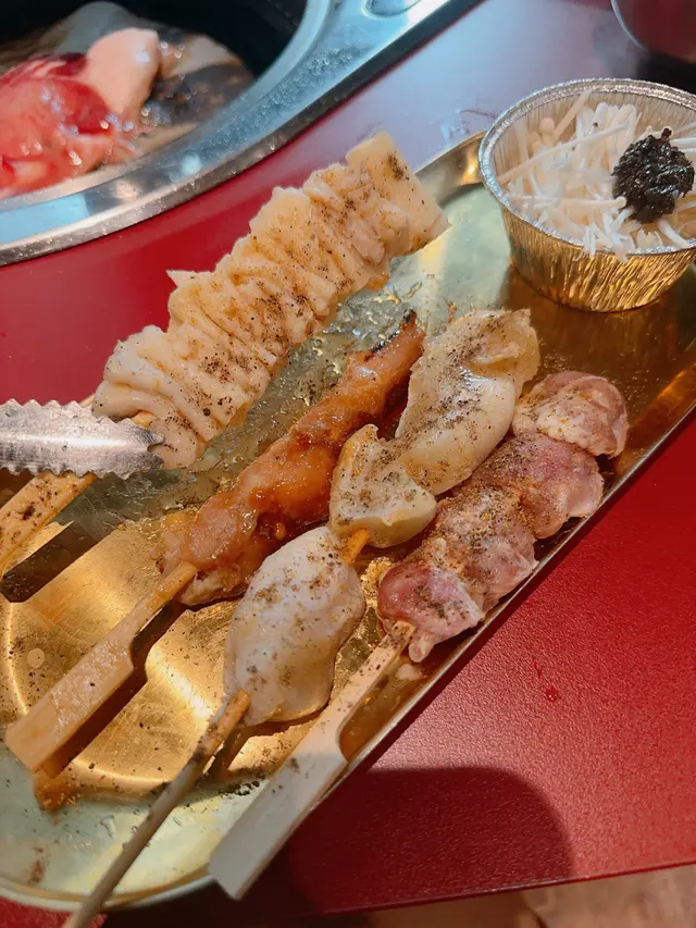 海鮮很新鮮 有海蝦🦐帆立貝 多春魚 魷魚翼🦑丸類和香腸類款色多 台灣腸爆汁帶甜味👍🏻蔬菜類有黑松露金菇跟蒜蓉茄子🍆好容易燒值得一試🍢串燒是要自己燒的 店員也貼心地教我們如何把雞皮燒得脆卜卜🤤👍🏻