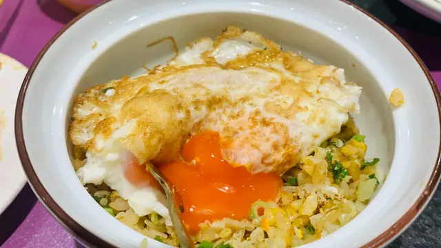 🍚6. 創作時令主食係蘭王蛋飯,師傅非常認真用心去炒,配上蛋香同椰菜花粒粒,更會不斷炒,令飯粒粒分明,口感乾爽切香口。最後加的流心蘭王蛋更加係重點😍😋😋可以話係最好食嘅蛋飯😋😋😋