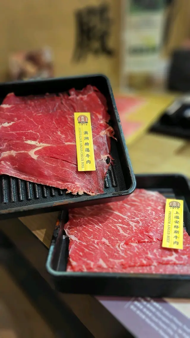 套餐正有買1送1優惠, 一開頭會有20斤北海道和牛, 顏色非常粉嫩, 配上很美的雪花紋理, 未吃已經感受到它的美味 🤩 為免糟蹋這些高質靚肉, 不要淥太久 😌 果然一吃肉質非常幼嫩, 滿滿油脂感, 而且味道鮮甜 😋 雖然如此, 但未至於入口即溶。