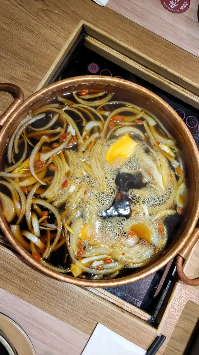 總覺得這款牛配花膠美人鍋會更配搭, 不過這次選了藥膳紅燒牛肉鍋, 帶微微藥材味, 雖然藥材味薄弱, 但整個湯頭很濃郁, 而且越滾越濃, 後尾更有點咸 🙃