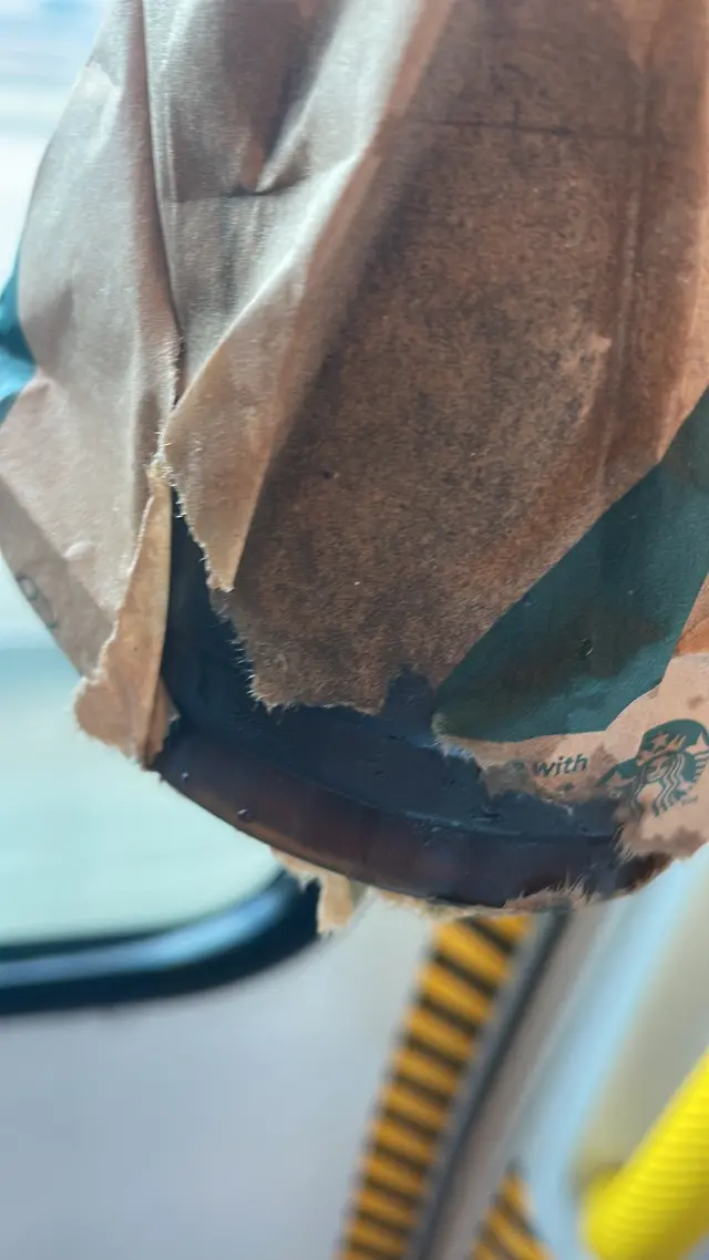 買凍咖啡外賣佢俾個紙袋我