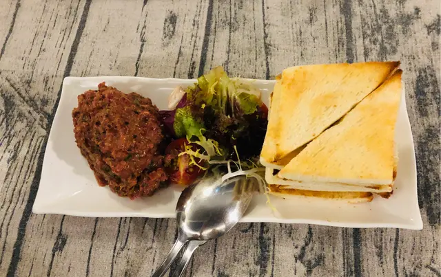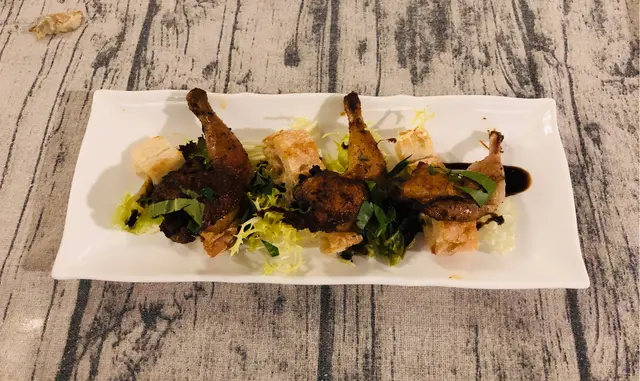 老闆為人細心,招呼周到,為我哋建議了一系列菜式。必點的有燒雞,美國西冷牛扒、法式鴨腿煲仔飯,前菜有他他牛多士及芝士炒雜菌多士,雜菜沙律,雞泡魚干,另外,必須一讚的是上湯菜心,中西合璧,還有香濃嘅焗洋蔥湯及香煎鵪鶉髀。