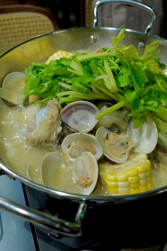 鍋底好足料, 蜆鮮量多 豬手軟林好味, 食得開心!