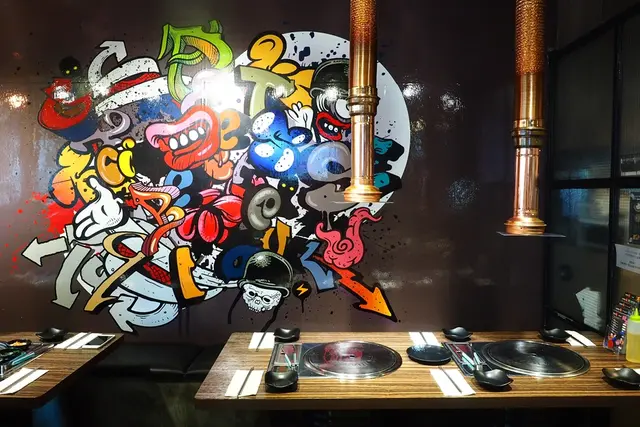餐廳內走工業風的裝潢,牆上也有街頭畫的塗鴉,感覺很"型"! 最重要係抽風系統比想像中好,食完都無一身燒烤的油煙味。