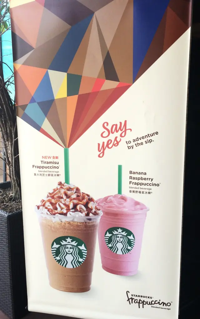 繼上一站喺試過窩夫後,行完赤柱廣場,落到地面,感到有點口乾,環顧四方好像沒甚麼特色飲料。看到Starbucks 門前掛著大大張海報寫著「。全新。意大利芝士餅星冰樂、香蕉野莓星冰樂」,一於入內一試~