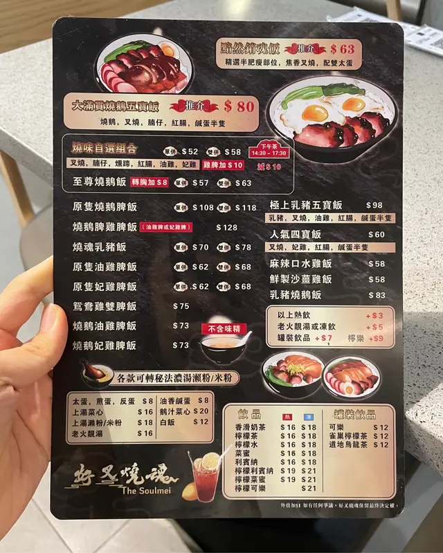 叉燒可選半肥瘦或全瘦,可選燶邊;雞肉可轉雞胸或雞髀,可以走雞翼