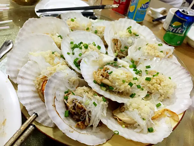 如手掌般大的<金銀蒜粉絲蒸元貝 >登場時,歡呼四起,肉厚肥美,蒜蓉粉絲亦不會厚此薄彼。