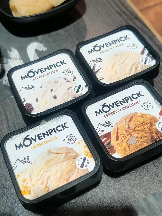 呢個餐Movenpick任食,碎朱古力、雲呢嗱、焦糖燉蛋同特濃咖啡味,後兩者最好味
