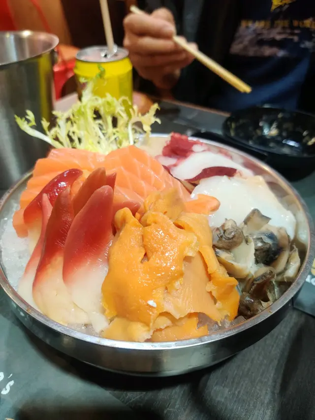 刺身款式多!北寄貝、赤貝、馬刀貝、帶子、三文魚、八爪魚、墨魚、榮螺。三文魚大塊新鮮,馬刀貝爽脆,帶子嫌佢切到細細粒冇口感,墨魚唔錯,其他正常
