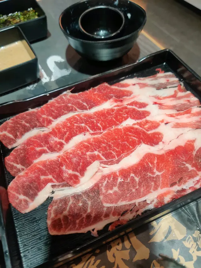 美國牛唔算好肥,雪花都有啲,唔記得影嘅M4/5澳洲和牛板腱嘅雪花都係咁上下分佈,比較薄身,肉味唔濃