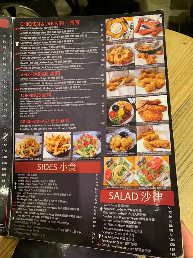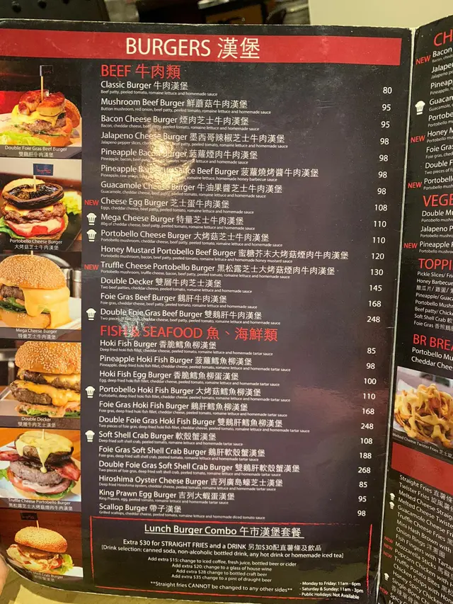 一到步餐廳,好快就有待應招待入座,入座後,待應就隨即比左餐牌我地。餐廳提供唔同類型既漢堡包,有牛、魚、海鮮、雞、鴨,連素類都有,適合素食者來試。今次我和朋友試了一個特量芝士牛肉漢堡和香脆鱈魚柳漢堡。貪吃的我們,還叫了一個牛油果醬芝士薯條和凍榛子朱古力。