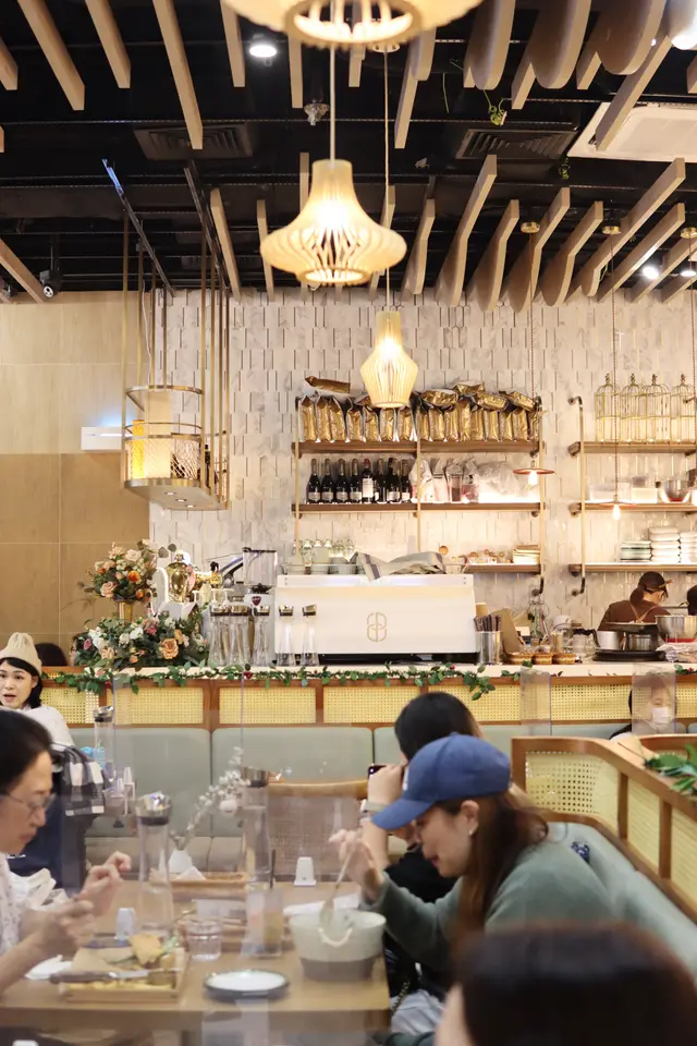 餐廳的裝潢下足功夫,一邊是落地玻璃,透光十足。