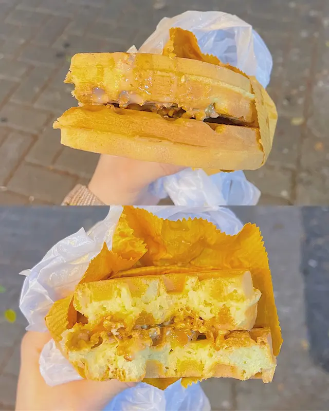 即叫即整熱辣辣!格仔餅就食得多,但加花生碎就比較少,格仔餅好厚,有成3-4吋!外脆內軟,蛋糕質感,食落唔乾係比較有濕度,好香甜有蛋味,花生醬同奶唔算多但都好夠味,花生醬嘅香煉奶嘅甜係perfect match,加埋花生碎口感好豐富,軟中帶脆,真係令格仔餅嘅口感再昇華,超級好食!可能係我食過最好食嘅格仔餅,仲要$20就有一份,又平又抵食,超高CP值又飽肚😭
