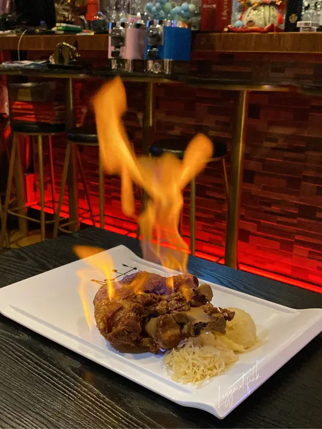 火焰鹹豬手會喺上碟嘅時候,淋上少少酒然後點火🔥非常適合打卡📸而味道方面,豬手唔會過太鹹,豬皮夠脆口,好好食~最啱用嚟送酒😁