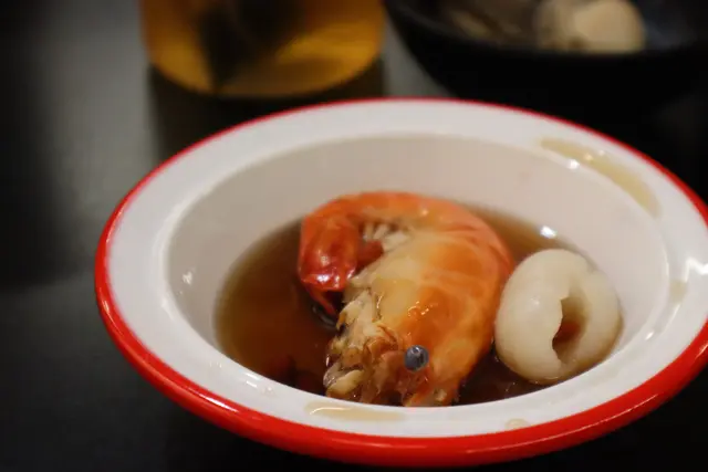 醉香大頭蝦爆曬膏,酒香豐富入味,肉質爽滑;磯煮飽魚亦非常軟嫩入味。