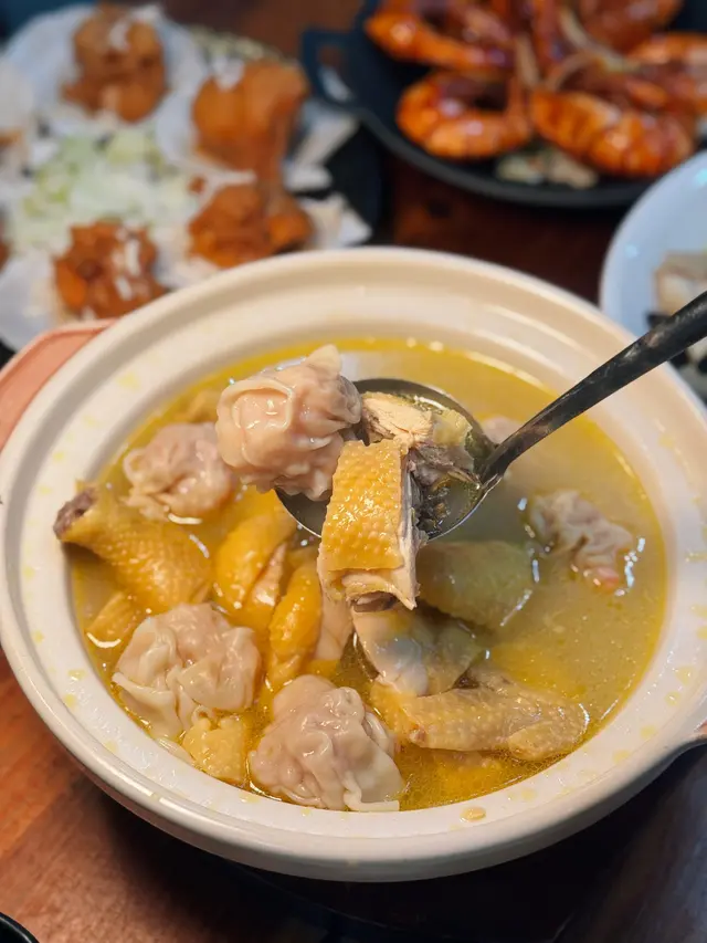 湯底呈奶白色,雲吞有六粒,粒粒飽滿,雞件嫩滑juicy,味道正正常常,夠經典