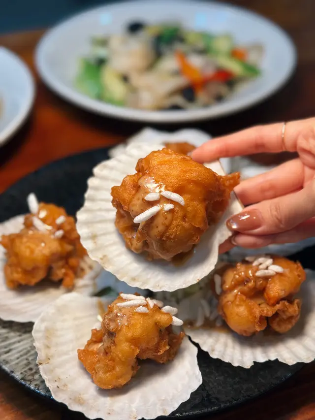 擺盤賣相吸引,元貝厚肉,外層酥脆唔厚粉,配胡麻醬令整體更清爽