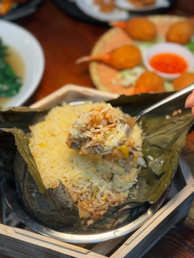 荷葉飯入面好足料,瑤柱、雞肉、冬菇等等加埋一齊,鮑汁夠多,就咁食個飯都好夠味,冬天食一流