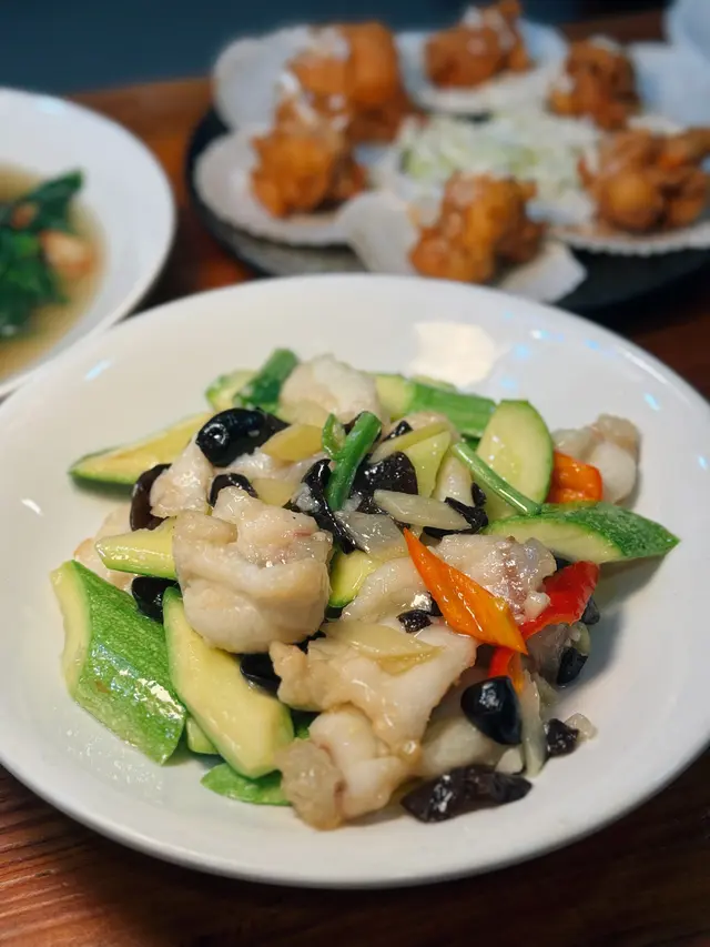 斑球嫩滑,加埋翠玉瓜、黑木耳、紅燈籠椒炒,有鑊氣