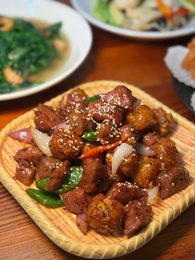 牛仔粒肉質爽彈入味,重點係個薯仔整得好有心機!!特登將薯仔切碎整成一粒粒再炸,有啲似薯餅嘅口感,外脆內軟,加埋啲蜜糖真係勁好食🩷