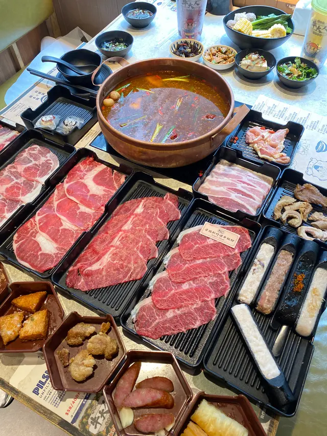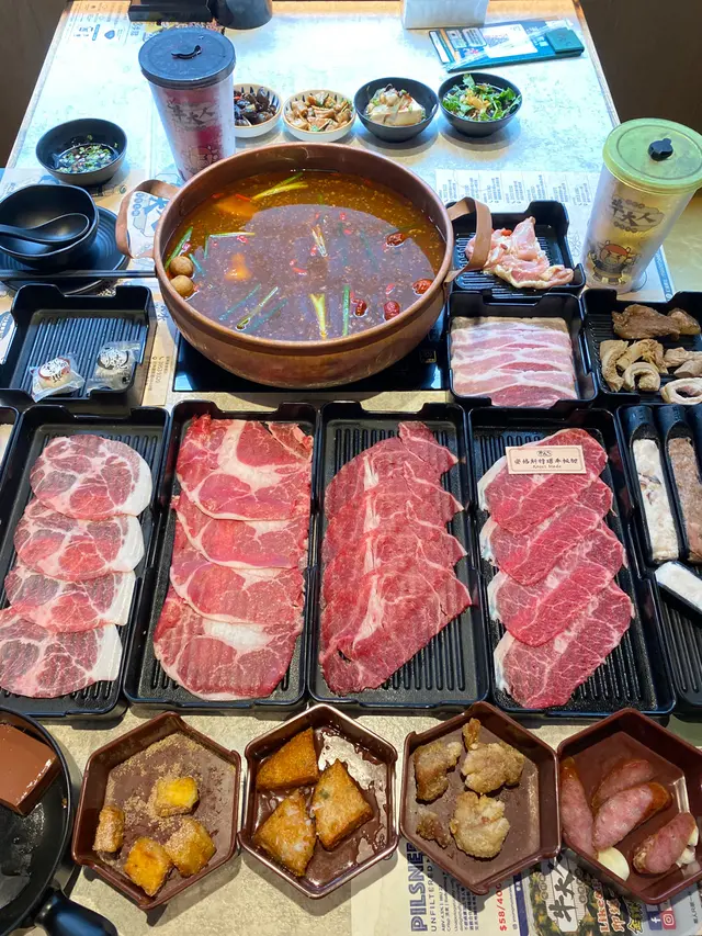 這次吃的是極上和牛午市套餐,可以吃到所有牛肉!200+實現和牛自由🆓安格斯牛小排肉質豐厚,肥瘦相間,涮幾秒即可入口即化!安格斯牛板腱Q彈有嚼勁還有梅花🐷肉🐑肉🐓肉任點任食!