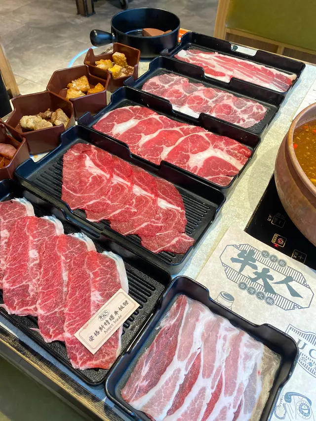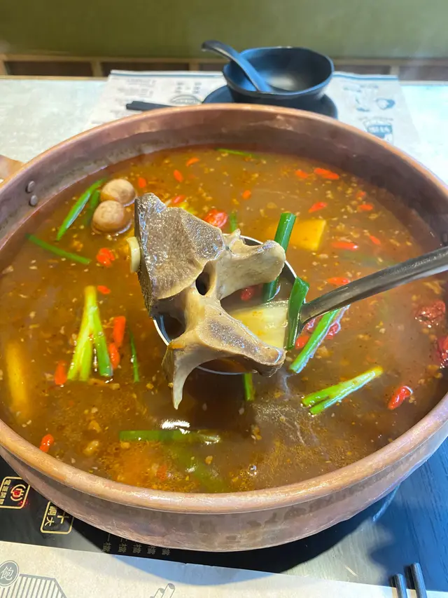 招牌牛大人紅燒牛骨鍋,湯底清澈濃郁,湯里有大大塊牛骨慢熬好幾個小時呈金黃色,營養又美味😋之前試過招牌麻辣鍋鮮香十足很開胃,吃辣星人可以試試!期間限定醍醐蕃茄酸辣鍋和三椒酸菜鮮魚鍋,好特別!