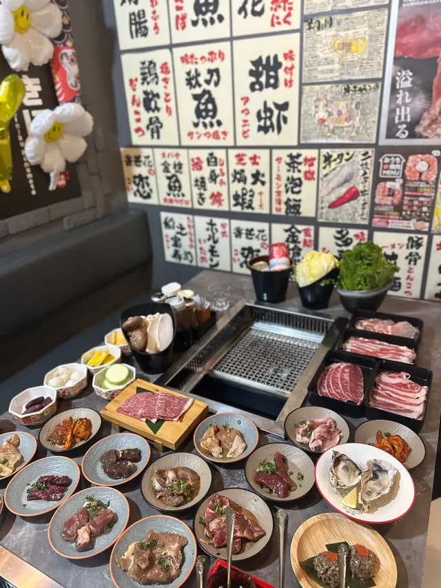 主打燒肉方面有和牛、牛柳粒、豬頸肉、雞軟骨、雞翼、多春魚、豬扒同雞肉等等,啲和牛肉身幾厚,岩哂啲食肉獸無限encore,重有打邊爐涮肉、蔬菜、金菇、冬菇、菠蘿、栗米同芝士丸丸類等等, 啲打邊爐涮肉食落滑溜溜, 丸類爆哂汁大大粒, 燒菠蘿食落清甜又唔酸, 用黎清下燒肉同涮肉既油膩就最啱, 尼間重可以燒棉花糖添,有bbq感覺