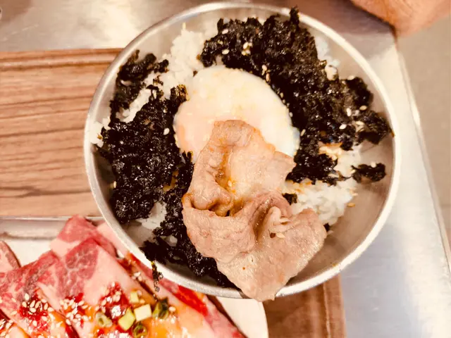 將牛肉加埋落撈勻左嘅溫泉蛋紫菜飯當中食,感覺幸福😊