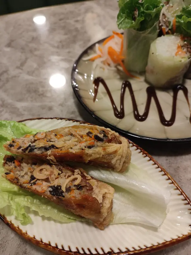 春卷和米紙卷一直都好啱我口味(感覺我很喜歡吃卷物🤣),呢間店的紙米卷特別薄,口感是煙煙韌韌的,和牛肉、米飯、配菜同醬汁撈埋,一啖咬落去好有滿足感。而春卷香香脆脆的,記得搭配魚露吃!跟餐點兩件只需要26,好抵!