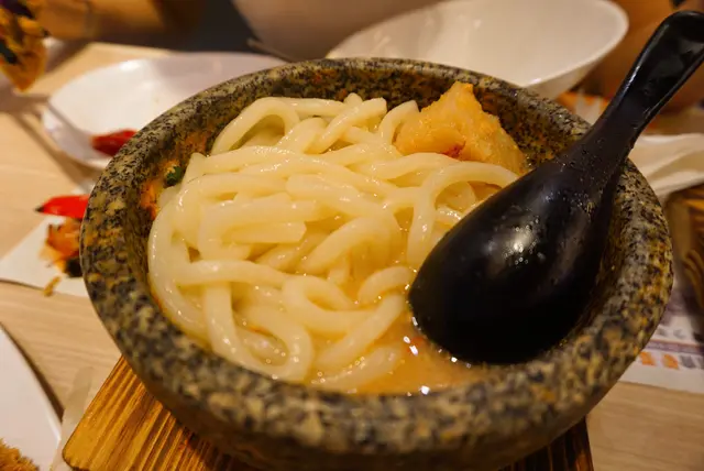 配的手打烏冬應該是出自於讚歧烏冬的,麵條較粗,口感煙韌彈牙。這款適合喜歡清淡的人,也是值得一試。