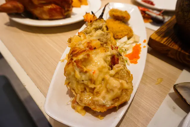 雖然龍蝦只有半隻,但也十分足料呢。雖然選擇了芝士焗,但不是只有一片芝士在上面喔!芝士和龍蝦中間蘊含滿滿的海鮮料,有小蝦仁、蜆肉、蟹柳和芝士汁。龍蝦肉肉質較淋,但味道也不錯。