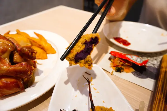 伴碟的炸紫薯餅口感也是相當甘甜!