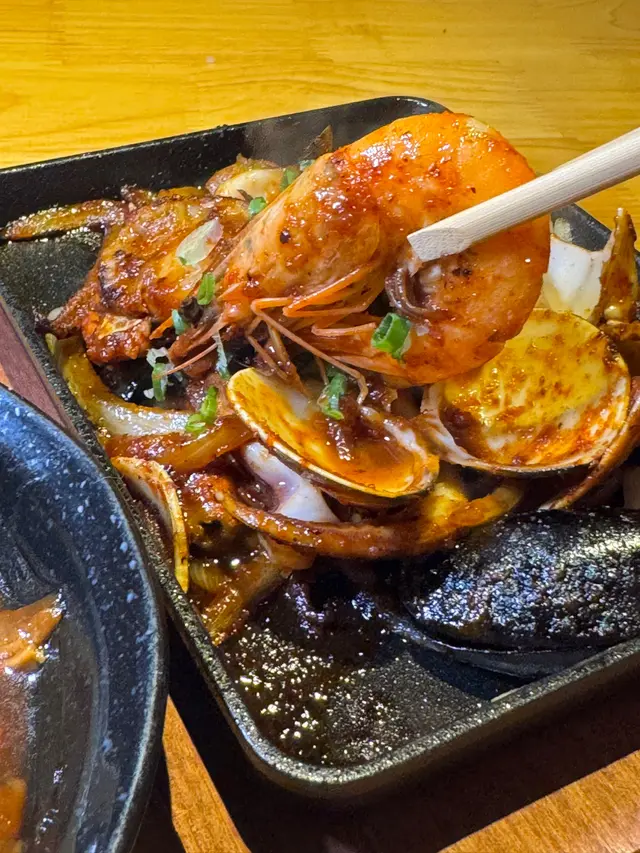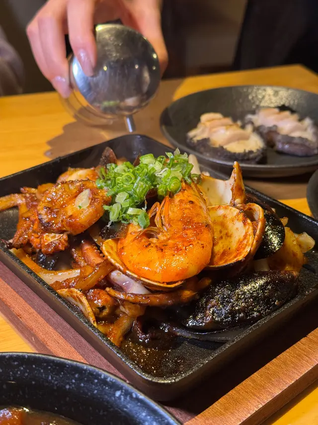 炒海鮮材料豐富,分別有大蝦、魷魚、帆立貝、青口配合洋蔥及香辣醬爆炒,非常有鑊氣,上枱時再加上清酒,更加香辣惹味