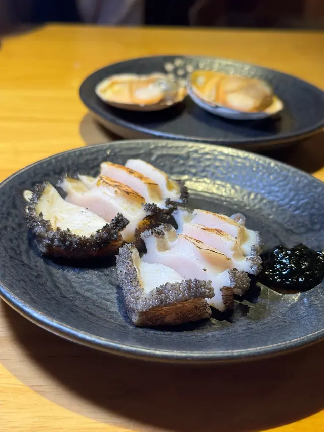 這裏的主角,我們分別點了白貝浜燒和南非鮑魚 ,即點即燒,完全能品嚐到海鮮的新鮮鮮味,其中南非鮑魚仲配上黑松露醬,令味道更加鮮香
