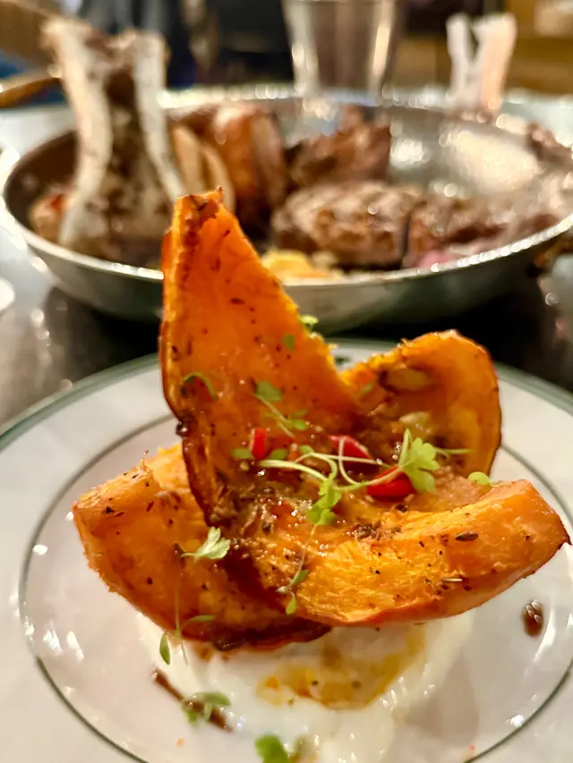 日本南瓜本身有甜味,辣椒、石榴糖漿、薄荷乳酪醬汁,更加突出南瓜嘅清新甜味。