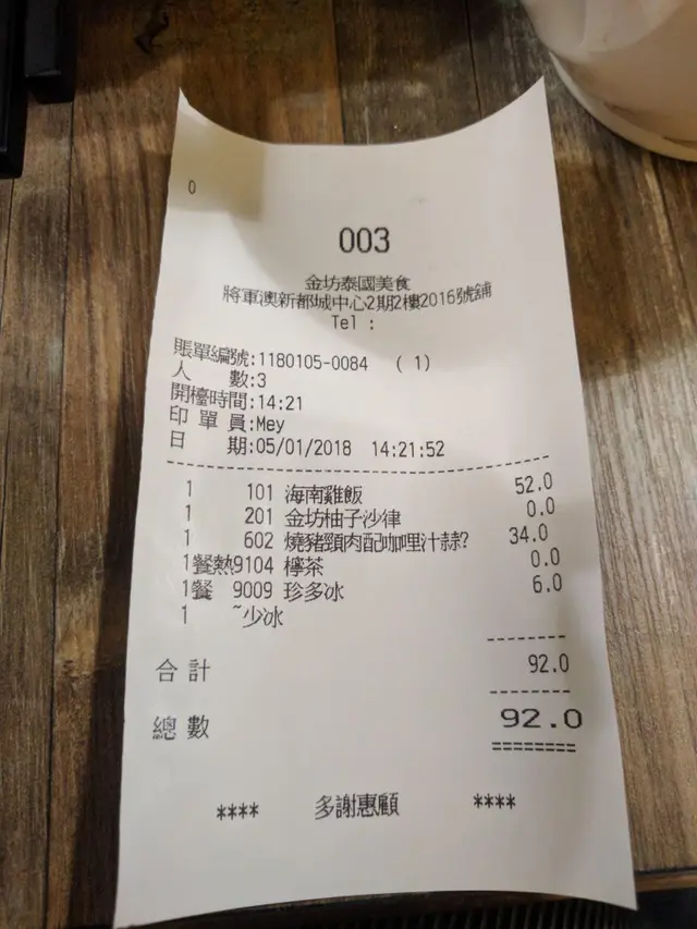 雖然係下午茶時間,但門口都係多人到好似午市咁,我地等左大約20分鐘先有位。下午茶既menu款式比較多,但份量就比較少,有多士﹑細既湯河或炒粉麵飯咁,由三十幾到四十幾不等,而午餐menu就正常份量,再加一個小食同湯。我地叫左一個海南雞飯,一個黃咖哩燒豬頸肉配蒜蓉包,由於馬拉盞炒通菜賣曬,我地揀左青木瓜柚子沙律做小食,湯就揀左比較少見既椰子雞湯。
