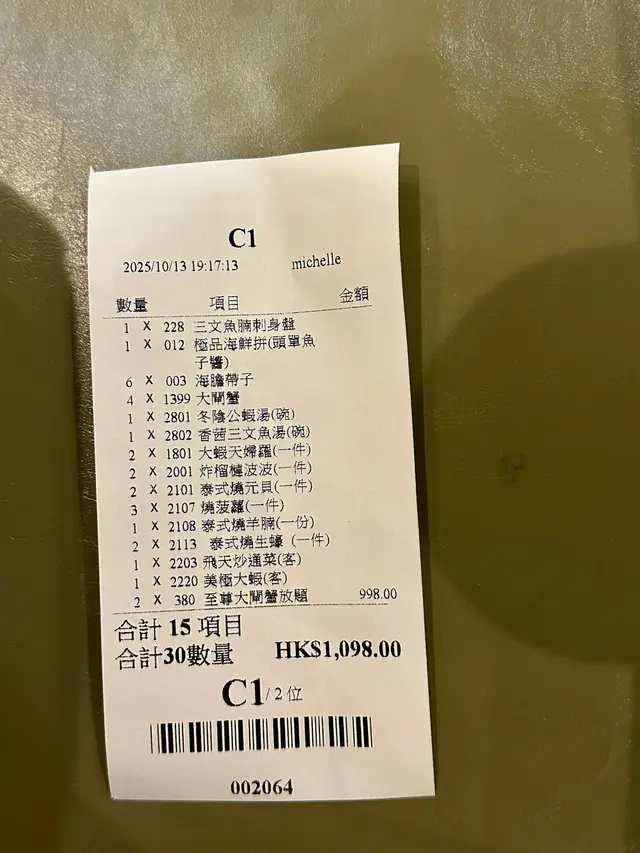 大蝦天婦羅同榴槤波波等炸物都係即炸,炸到金黃色。泰式燒元貝同生蠔味道好特色,燒得香噴噴,濃郁蒜香味!燒菠蘿燒過之後仍然香甜多汁,解膩消滯,必點!