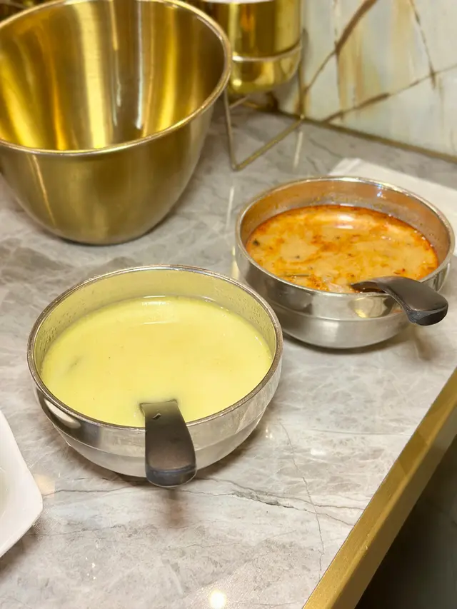 湯品有冬陰功蝦湯同香茜三文魚湯,湯底夠香濃,熱辣辣,飲完好暖胃。