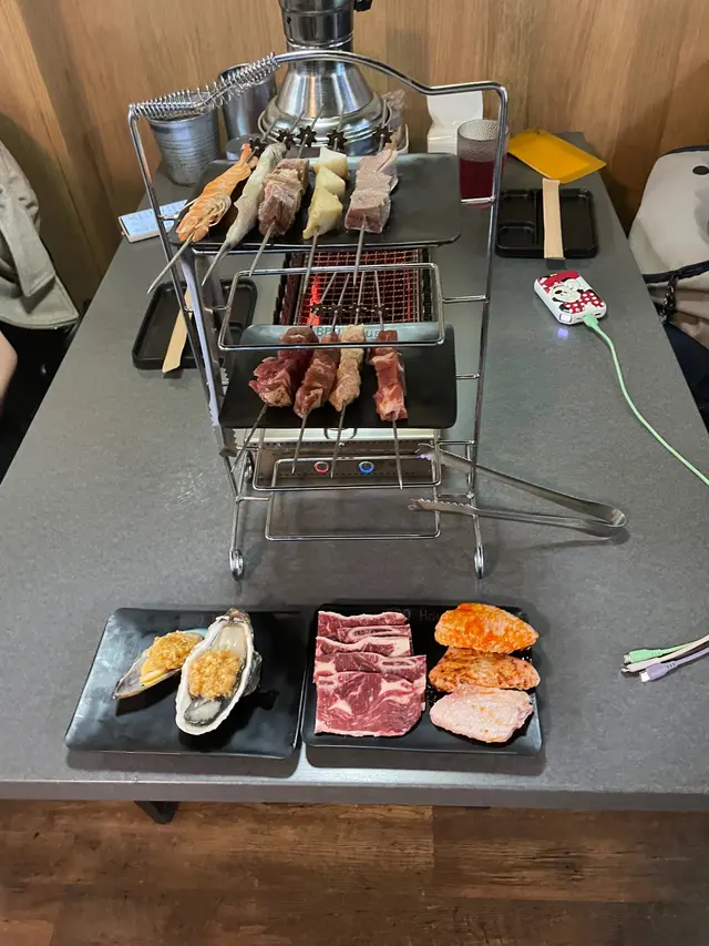超輕鬆嘅燒肉 RoomNfoodshare等級42025-01-176K 瀏覽 關注 可以解放雙手嘅串燒屋 🥳平時韓燒日燒食得多冇諗到仲有呢種串燒佢同一般嘅網燒好相似,但係上面會多咗一個架可以俾你擺放串燒而且擺放完之後啲串燒會識自己轉動所以基本上唔使翻佢就已經熟咗真係好方便而且觀塘呢一間串燒屋食物選擇都多基本豬牛雞有晒,亦都有我鍾意嘅蠔同埋青口蠔上面嘅蒜蓉真係超好食,鹹鹹地好開胃而且佢都有好多種類嘅調味料可以施展自己嘅調味之手令到串燒更加好食而且飲品方面都好用心會有自家製嘅中式飲品叫一大渣嘅洛神花茶就最正啦以上食評乃用戶個人意見 , 並不代表OpenRice之觀點。讚好分享超輕鬆嘅燒肉 串燒屋 https://s.openrice.com/QrbT03vDP00檢舉 張貼 評分5味道5環境5服務5衛生5抵食用餐途徑堂食