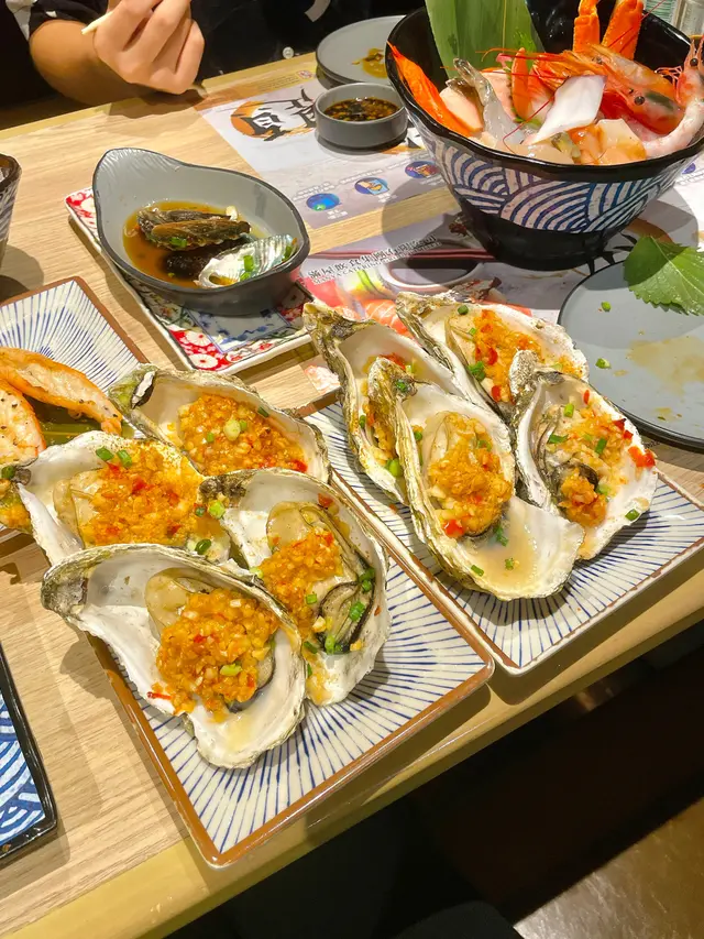 燒物(跟餐$0),包括有川燒蒜蓉焗生蠔、鐵板開邊蝦、鐵板香煎比目魚、黃金焗扇貝、鹽燒雞軟骨,鐵板香煎比目魚食落油脂味濃。