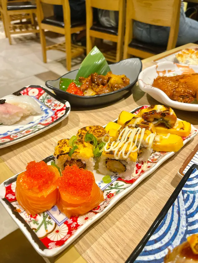 壽司(跟餐$0),包括有金槍魚二重奏壽司、胡麻醬燒左口魚邊壽司、蒜香牛油帆立貝壽司、火炙焦糖三文魚壽司、火炙七味醬燒蠔壽司、黑松露油甘魚壽司、黑松露墨魚壽司、特濃芝士醬燒皇帝蟹棒壽司、火炙鰻魚壽司