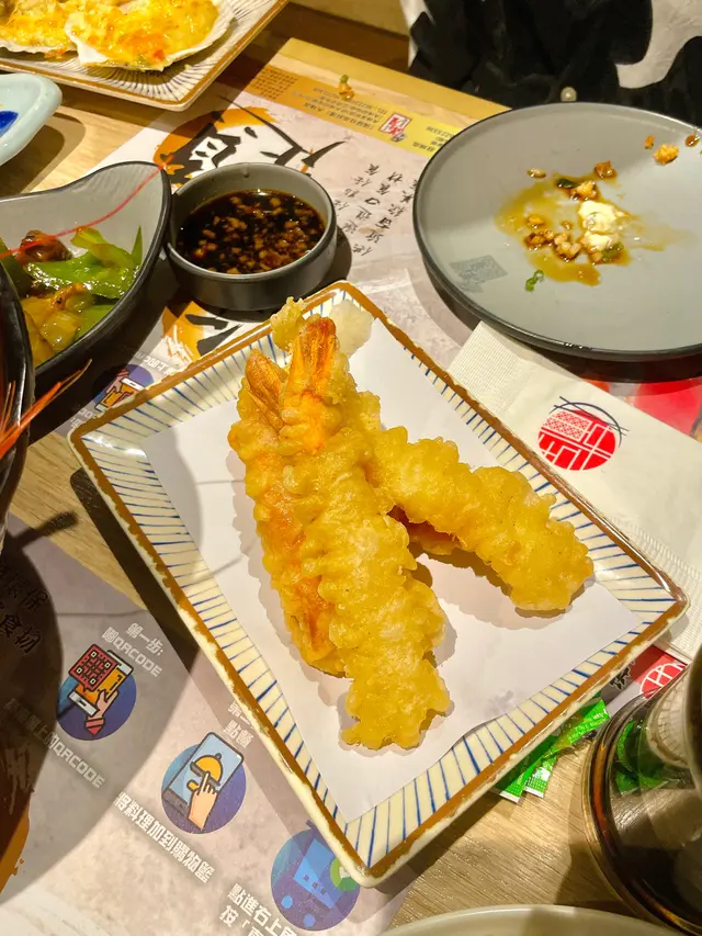 天婦羅(跟餐$0),包括有帝皇蟹棒天婦羅、虎蝦天婦羅、芝麻雞翼、吉列炸蠔、貓山王榴槤炸彈、紫心香芋丸。