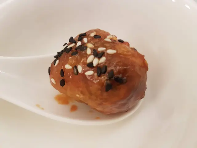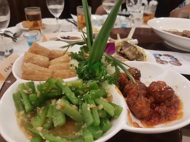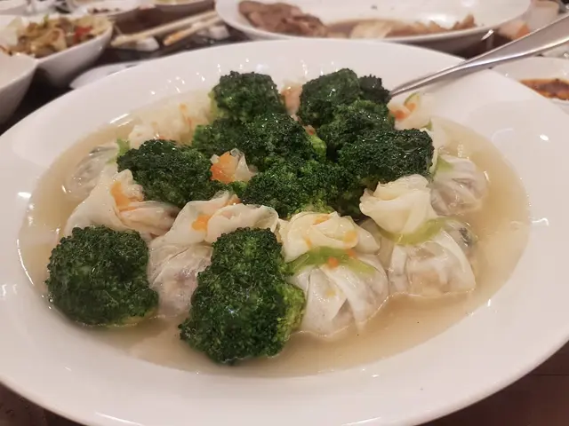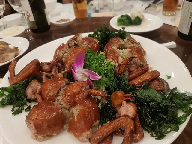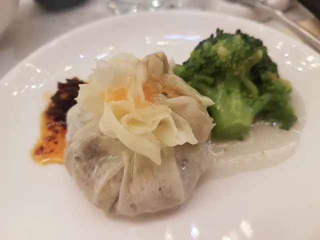 錦繡石榴雞直是「含苞待放」,以透薄的蛋皮包裹著雞肉素菜與海鮮,這一道石榴雞浸淫於晶瑩的獻汁裡,其味道是驚為天人地好。所有食材的配搭都混融交滙,調和得無可挑剔,淡淡的獻汁不會搶了餡料的鮮嫩滋味,蛋皮細薄爽口,帶出清新不凡的感覺。小的一直認為西環「德記」之石榴雞最為出色,今次似乎是「百樂」忠於傳統地稍勝一籌。