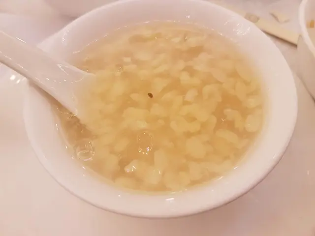 「濃情傲雪」之杏汁肺湯極見濃稠,全場對之也是讚不絕口。湯汁透出濃濃的南北杏和牛乳的品道,每一啖都非常滋補。