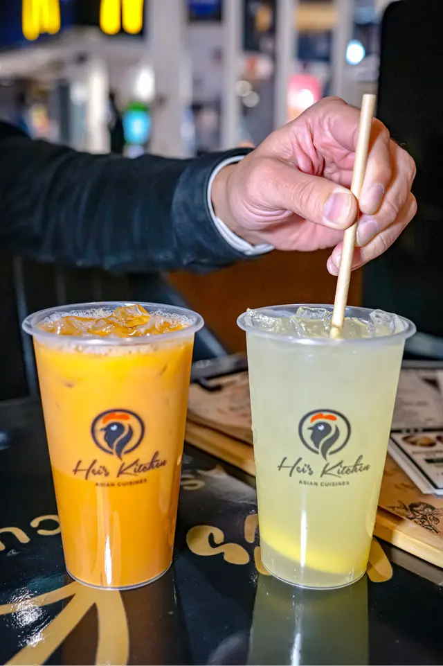 飲品叫咗個泰式班蘭奶茶(+$4)同凍金桔檸檬水(+$4),仲有泰式青檸梳打、百白果鴨屎香檸檬茶、黑糖紅豆咖啡、鮮椰班蘭拿鐵等等特色飲品可以揀,如果可以逐樣試就好喇🤤